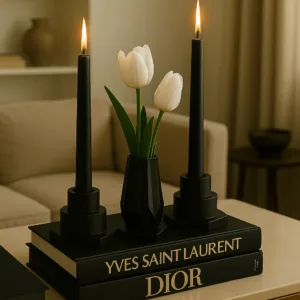 🕯 Set İçeriği: 3 alt sunumluk, 1 dekoratif vazo, 2 şamdanlık