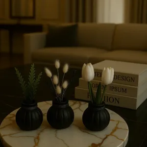 Mekanlarınıza zarafet katacak 3’lü dekoratif mini vazo seti! El yapımı, şık ve modern tasarımı ile masa, raf ve sehpa dekorasyonlarınız için mükemmel bir seçimdir. Hediye olarak da harika bir alternatiftir.