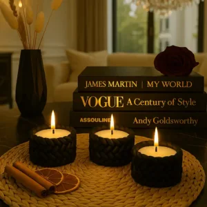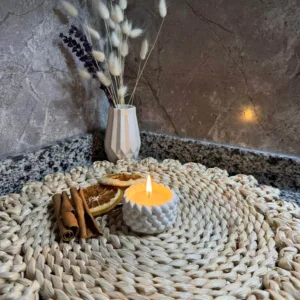 El işçiliğiyle üretilmiş taş tozu 3’lü dekoratif kase içinde yer alan mis kokulu mum ile evinize sıcaklık ve şıklık katın. Doğal görünümü ve zarif tasarımıyla hem dekor hem de huzur verici bir atmosfer sunar. detaylarıyla bütünleşen bu özel tasarım, yaşam alanınıza estetik ve keyifli bir dokunuş katar.