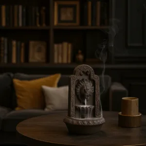 Güç ve asaletin simgesi aslan figürü ile tasarlanmış bu el yapımı taş Tütsülük, özel şelale efektli duman akış sistemi ile tütsü dumanını aşağıya doğru estetik bir şekilde akıtır. Doğal taş malzemeden üretilen bu parça, dayanıklılığı ve zarif görünümü ile ev ve ofis dekorasyonuna mistik bir atmosfer katar. Tütsü, buhur veya aromaterapi uygulamaları için idealdir.