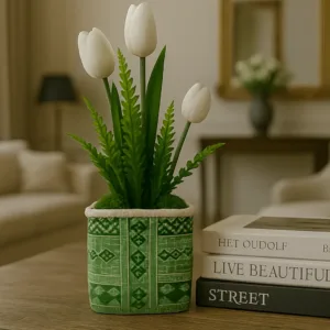 El işçiliği ile üretilmiş premium taş tozundan dev boy dekoratif saksı, modern desenleri ve şık tasarımıyla ev ve ofis dekorasyonuna zarafet katıyor.
