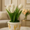 El işçiliği ile üretilmiş premium taş tozundan dev boy dekoratif saksı, modern desenleri ve şık tasarımıyla ev ve ofis dekorasyonuna zarafet katıyor.
